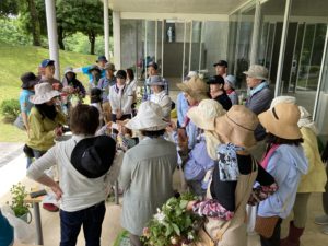 6月16日、旧ヴァンジ彫刻庭園美術館の庭園で、お庭を保全するためのイベントを行いました。町内外から40名程が参加し、庭のお手入れを手伝いつつ、普段は入る事の出来ない旧ヴァンジ彫刻庭園美術館の庭園を満喫しました。20年以上ヴァンジの庭園をお手入れしていた元ガーデナーさんと共にお庭へ入り、プロに教わりながら草取りや剪定を行いました。参加者の皆さんは、見頃を迎えている美しい花々を摘み取り、剪定した枝を挿し木のポットにして持ち帰りました。