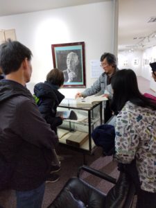 モンミュゼ沼津(沼津市庄司美術館)では、小説に「眉田さん」として登場する前田千寸先生に関するエピソードや資料の紹介があり、井上作品の文庫本の表紙を数多く手がけた版画家山口源氏の版木の見学もできました。