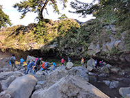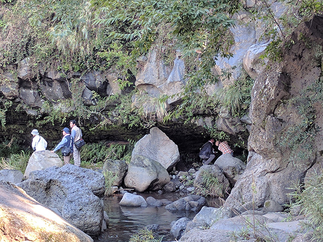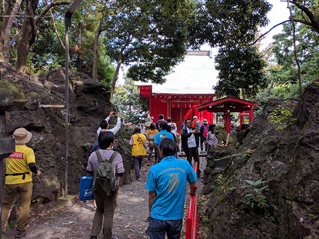 ジオツアー 清水・箱根コースでは、町内のジオポイントである鮎壺の滝、割狐塚稲荷神社をガイドさせて頂きました。