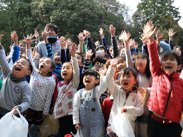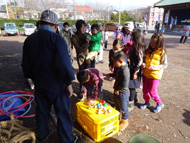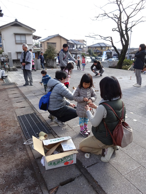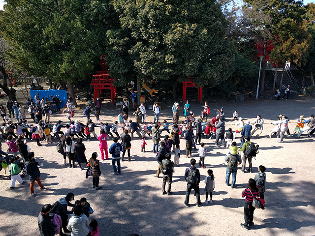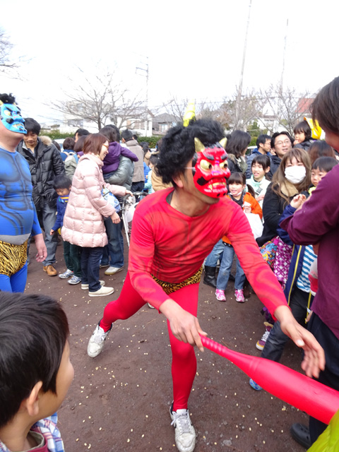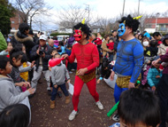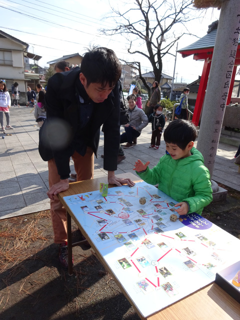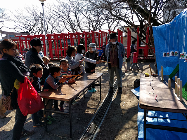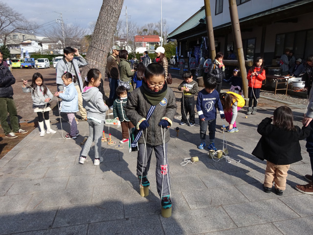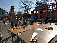 節分 豆まきと昔の遊びが1月29日(日)に、割狐塚稲荷神社にて行われました。とっても暖かい日でたくさんの子供たちが昔の遊びで楽しみました。