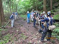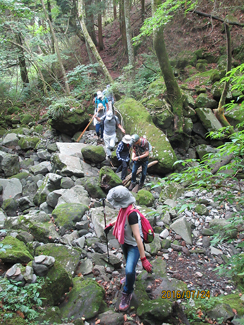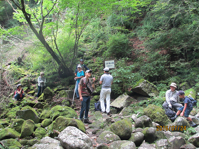 企画PR部会でジオポイントにもなっているつるべ落としの滝を見に行って来ました。途中では立派な板状節理やきれいな草花が見れました。幻の滝とも言われ、実際に水が落ちているかわからない中、ドキドキしながら登りました。たどり着いたそこには雄大な滝が!!とっても楽しいハイキングでした。カルタくんも一緒に登りました。詳しくはFacebookをご覧下さい。